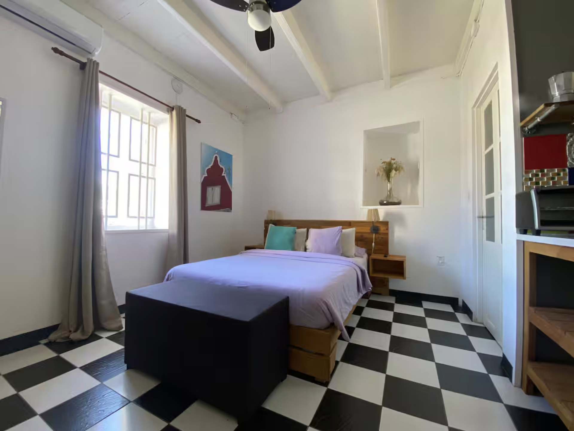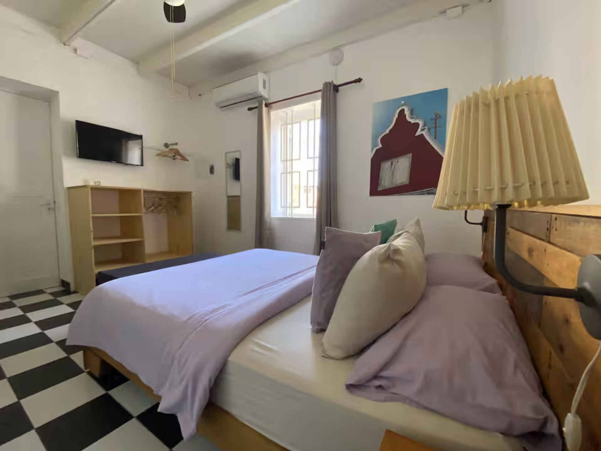 - Air conditioning, two ceiling fans, and Smart TV